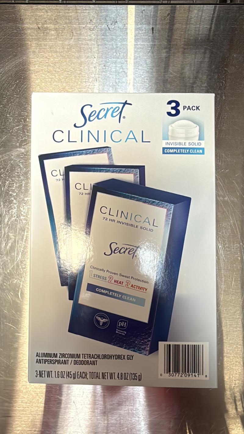 Secret Clinical Invisible Solid Antiperspirant and Deodorant, Completely Clean, 1.6 oz., 3 pk.