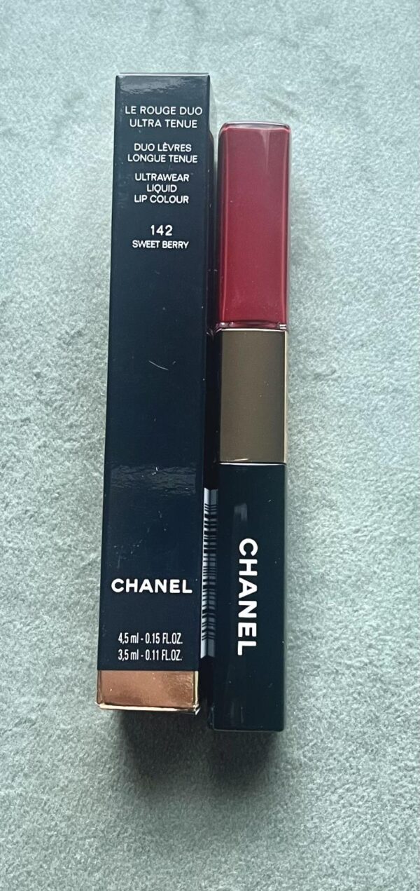 Batom líquido 2 em 1 com gloss de super longa duração Rouge Duo Chanel. Cor 142 Sweet Berry. NOVO