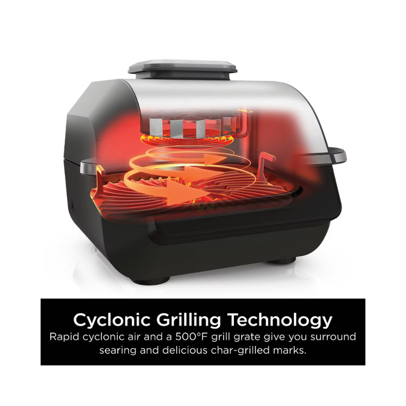 Tecnologia de Grelhar Ciclônica — Ar a 500°F (260°C) circula ao redor dos alimentos para um dourado uniforme, enquanto a grelha de alta densidade a 500°F cria marcas e sabores de grelhado.